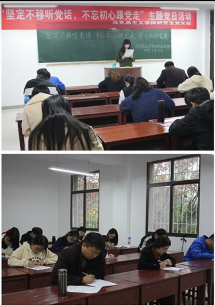 为全面深入学习习近平新时代中国特色社会主义思想和党的十九大精神,进一步调动大家对党建知识学习的热情。11月6日下午,“坚定不移听党话,不忘初心跟党走”系列活动知识竞赛环节在教五201教室顺利举办,本次竞赛活动由研究生党支部副书记易思铭主持。