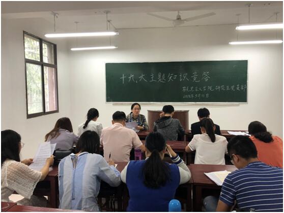 2018年5月11日上午,在教五201教室,beat365官网研究生党支部开展了十九大报告主题知识竞答活动,支部书记卢云晓、部分党员和入党积极分子参加了活动,支部副书记魏中龑主持活动。