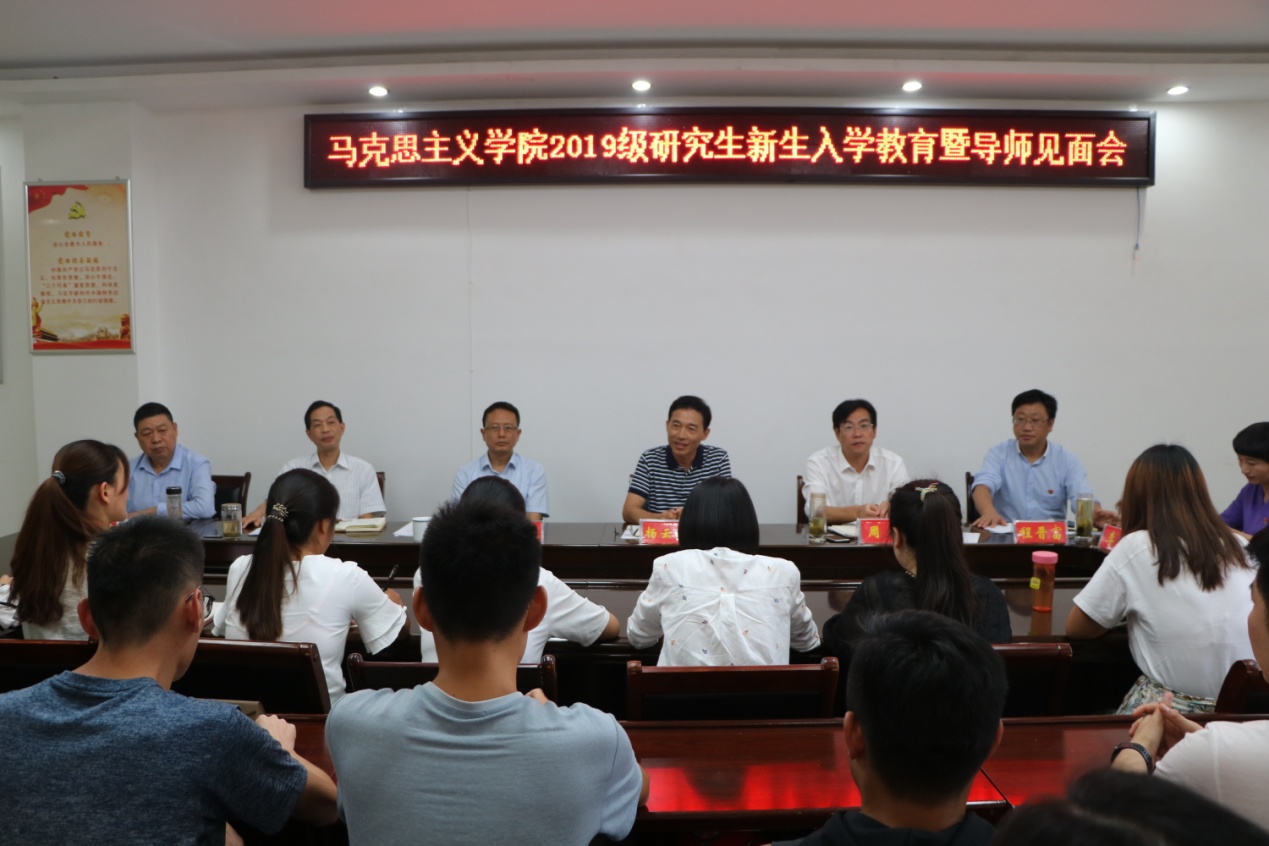 9月24日下午,beat365官网2019级硕士研究生入学教育暨导师见面会在社科楼323会议室举行。学院院长杨云善、党委书记唐国战及领导班子成员周智、黄世明、门献敏、程晋富,导师代表李蕊等出席会议,2019级全体硕士研究生参加会议,会议由黄世明主持召开。