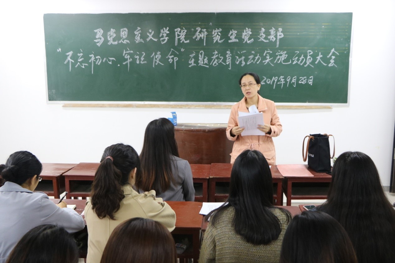 9月28日下午,beat365官网研究生党支部在教五楼201教室召开“不忘初心,牢记使命”主题教育活动实施方案动员大会,全体研究生党员和入党积极分子参加大会。会议由研究生党支部书记卢云晓主持。