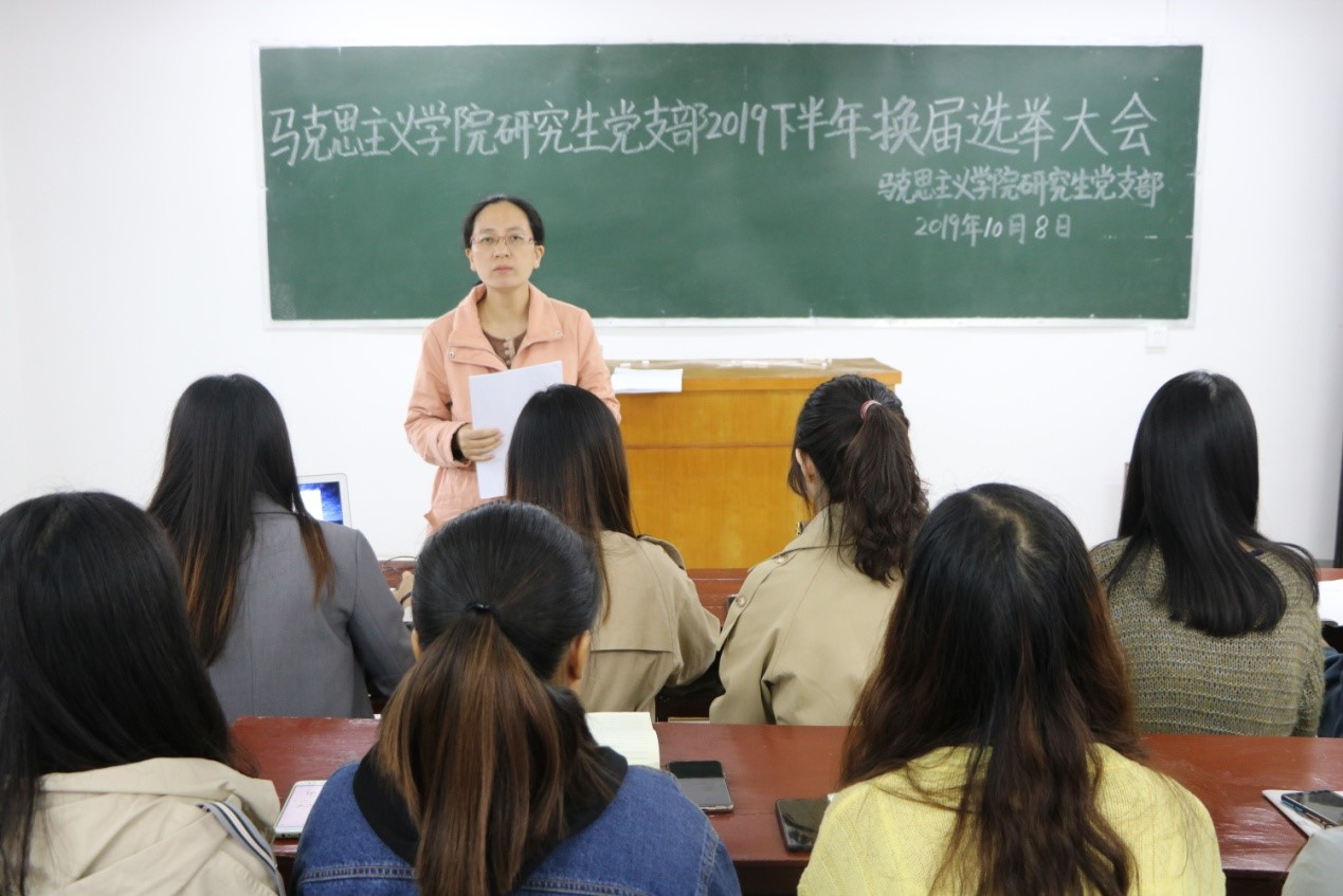 10月8日下午,beat365官网研究生党支部换届选举大会在教五楼203教室举行。全体支部党员参加本次会议,支部书记卢云晓主持会议。