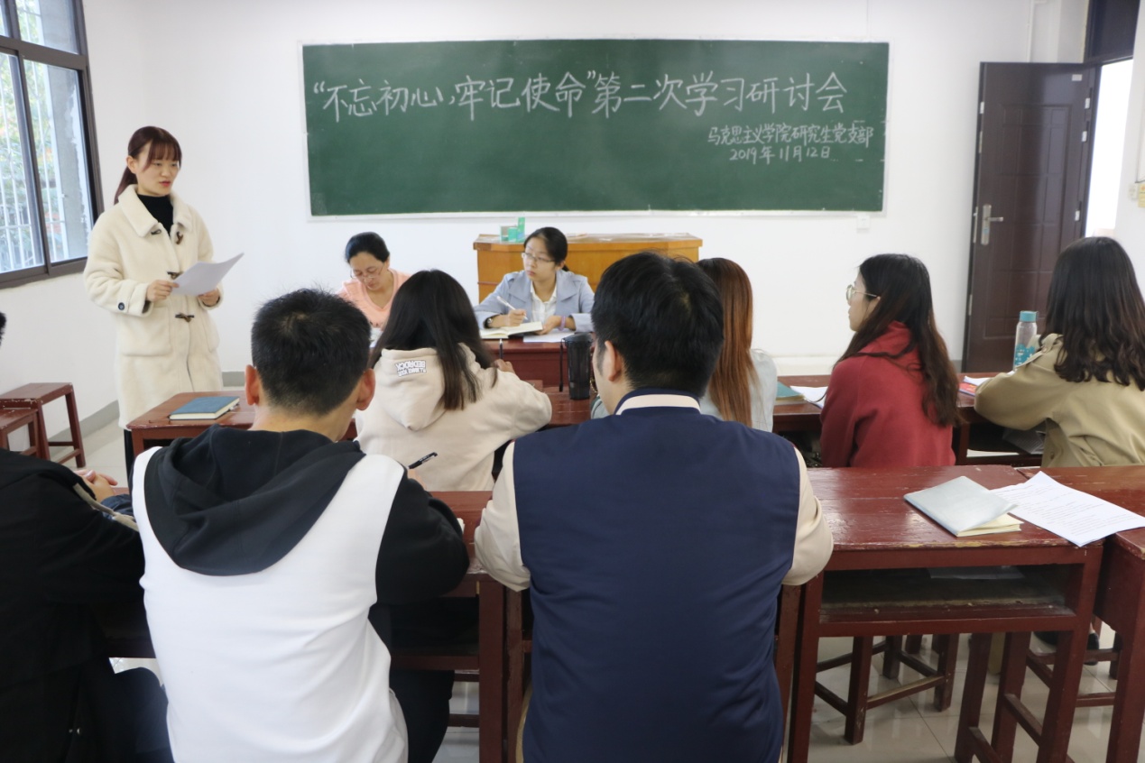 为继续强化主题教育成果,11月12日下午,beat365官网研究生党支部在教五楼203教室开展了“不忘初心、牢记使命”第二次学习交流会,支部党员和入党积极分子参加会议。会议由支部书记卢云晓主持。