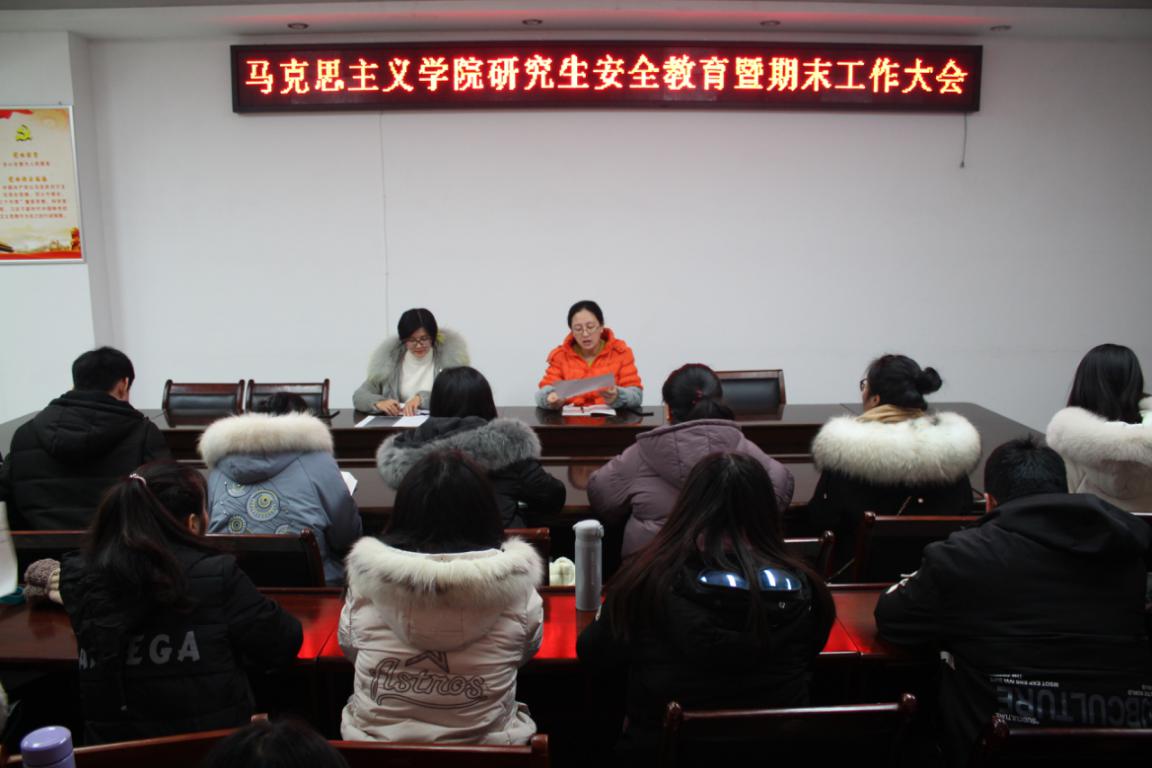2019年12月25日,为加强研究生安全防范意识,自觉遵守校规校纪考纪,beat365官网在323会议室召开关于安全教育以及期末工作的会议,研究生教学秘书卢云晓和班主任郑晨霞及全体研究生参加了此次会议。