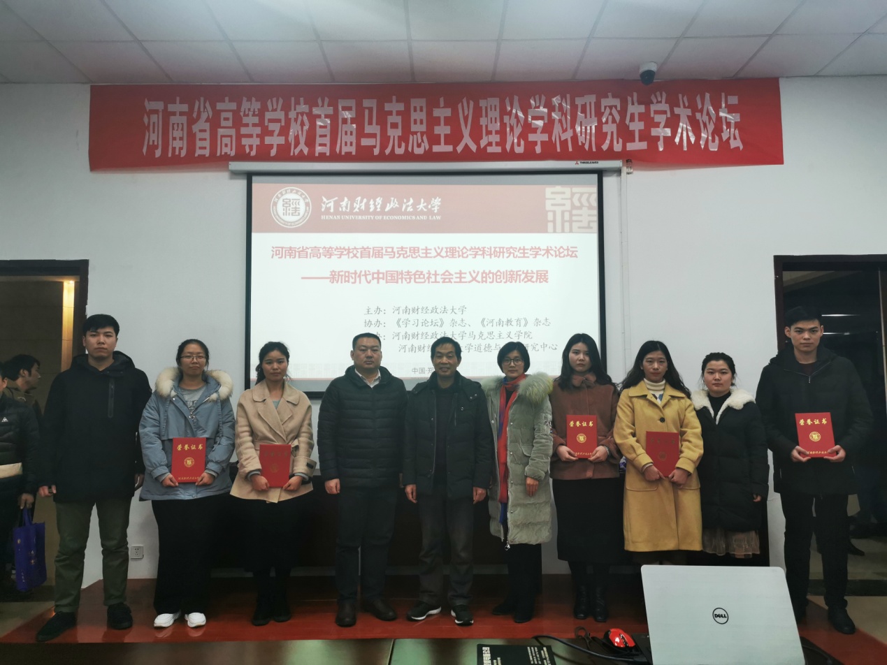 “河南省高等学校首届马克思主义理论学科研究生学术论坛——新时代中国特色社会主义的创新发展”学术研讨会在河南财经政法大学举行,beat365官网有7名研究生提交了学术论文并受邀参加研讨会,其中有两位同学在会上作交流发言。经会议组委会评审,