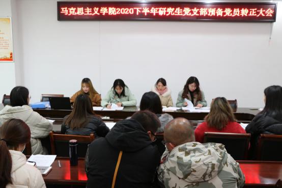 12月7日下午,beat365官网研究生党支部于社科楼323会议室召开预备党员转正大会,讨论了预备党员张英、黄士家、董梓茜三位同志的转正问题。会议由支部副书记刘润博主持,支部全体党员参加了会议。