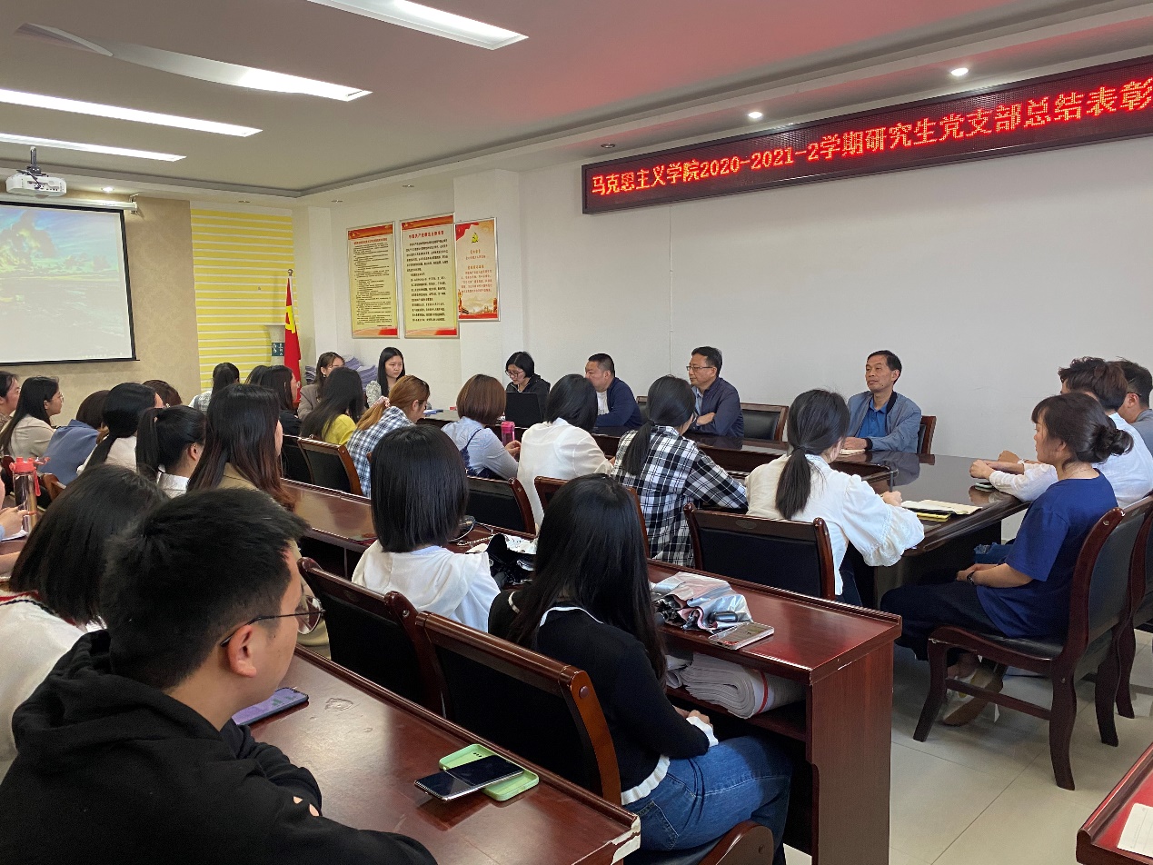 5月18日下午,beat365官网研究生党支部2020-2021-2学期总结表彰大会在社科楼323会议室举办。唐国战书记、黄世明副院长、何晓坚副书记和全体研究生参加了此次会议,会议由支部书记郑晨霞老师主持。