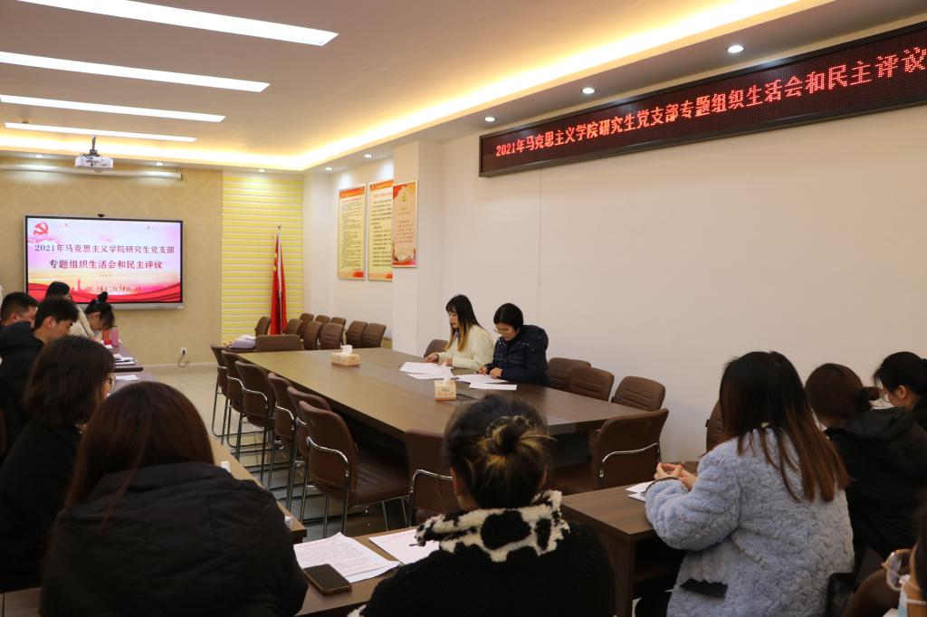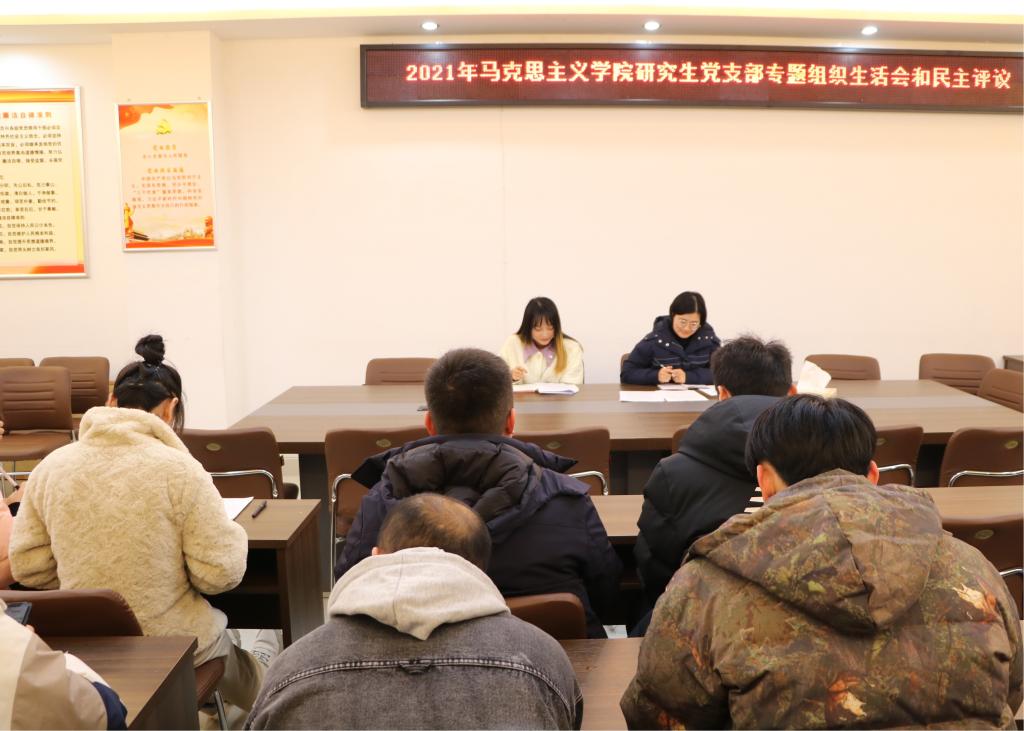 12月20日下午,beat365官网研究生党支部在社科楼323会议室召开2021年度专题组织生活会和民主评议会,会议由支部书记郑晨霞主持。