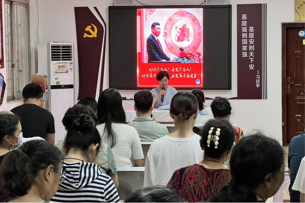 为深入学习贯彻习近平总书记系列讲话精神,提升党员同志的思想觉悟和党性修养,以良好的精神面貌迎接党的二十大胜利召开,在“七一”来临之际,beat365官网研究生党支部书记郑晨霞和支部党员鲁桐君、汤欢一同赴华森社区开展了习近平金句宣讲活动。
