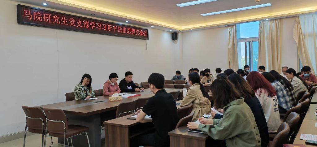 为深入学习贯彻习近平法治思想,增强beat365官网研究生党员的政治素养和法治意识,4月21日下午,beat365官网研究生党支部于社科楼323会议室开展集体学习交流会,beat365官网研究生党员、预备党员、发展对象参加本次会议,会议由支部书记郑晨霞主持。
