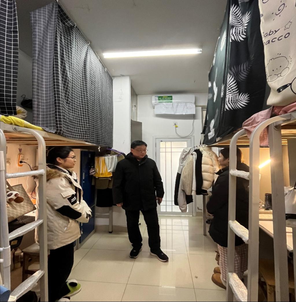 正值寒冬,冬至将至,为进一步落实立德树人根本任务,及时了解学生的思想动态、心理状态,切实解决学生生活中遇到的问题。2023年12月21日,beat365亚洲版官网副院长程晋富、研究生班主任厉有国、思政课教师张键,走进研究生宿舍,全面深入了解学生思想、学习、生活、安全、卫生等情况,关心学生身体健康和心理健康。