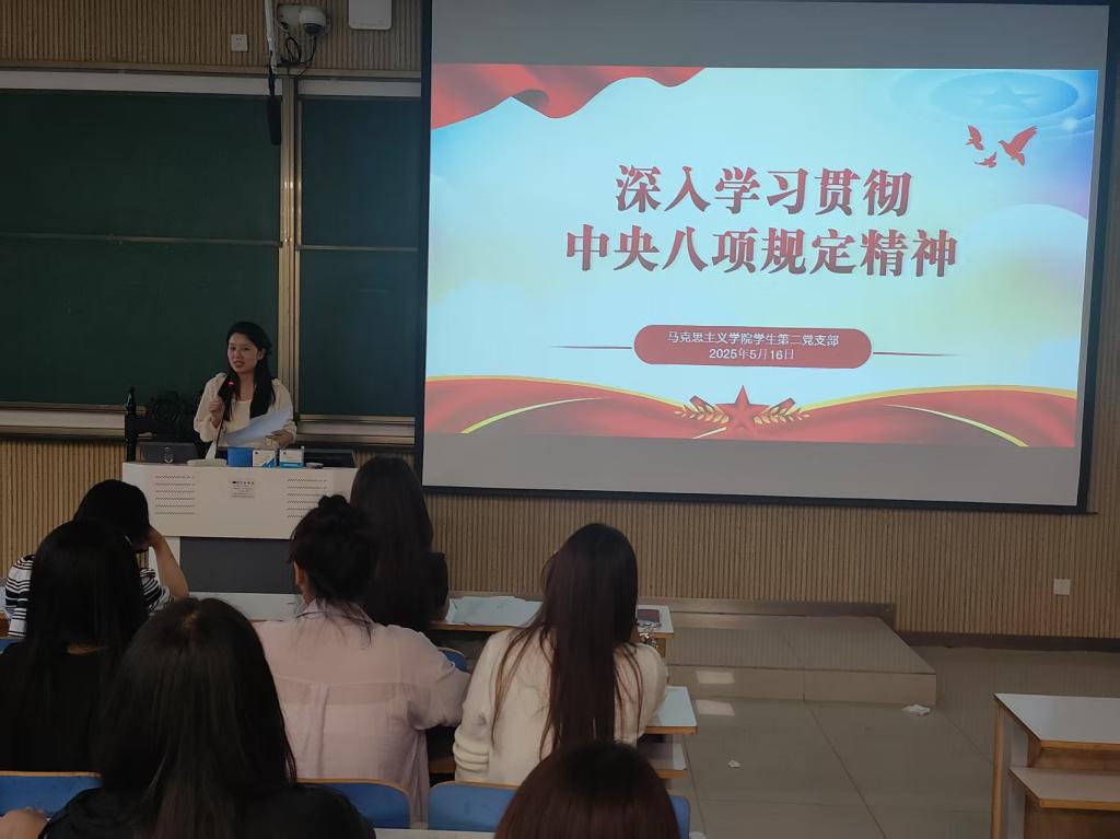 为进一步加强学生党支部建设,强化党员纪律意识,2025年5月16日,beat365亚洲版官网学生第二党支部召开了深入学习贯彻中央八项规定精神的专题会议。会议由学生党支部书记任婷主持,全体学生党员参会。