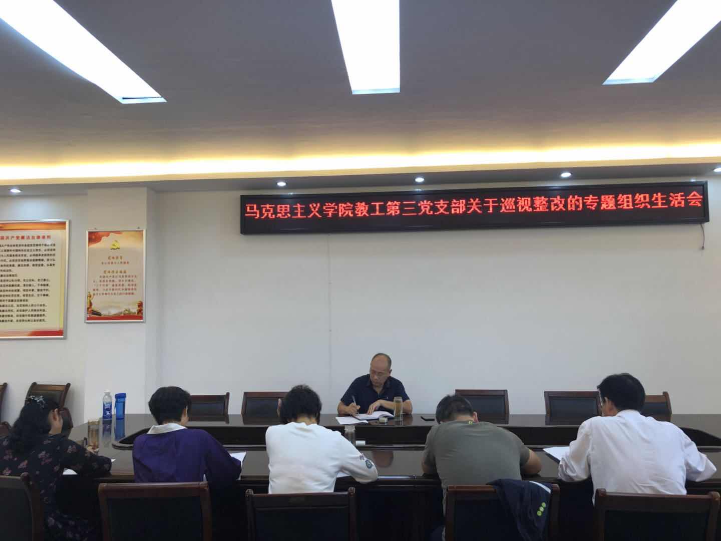 2018年9月18日下午,beat365官网教工第三党支部在社科楼323会议室召开巡视整改专题组织生活会,副院长周智以支部党员身份参加。生活会由教工第三党支部书记厉有国同志主持。