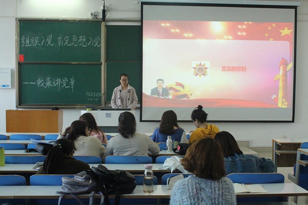为引导党员发展对象学习党章、尊崇党章和践行党章,牢固树立党章意识,进一步做到思想入党,积极营造“人人学习党章、人人尊崇党章”的良好氛围,4月8日下午,beat365官网第29期党员发展对象在社科楼515教室开展了“组织入党 首先思想入党--我要讲党章”活动。活动由本期党员发展对象组长徐豫资主持。