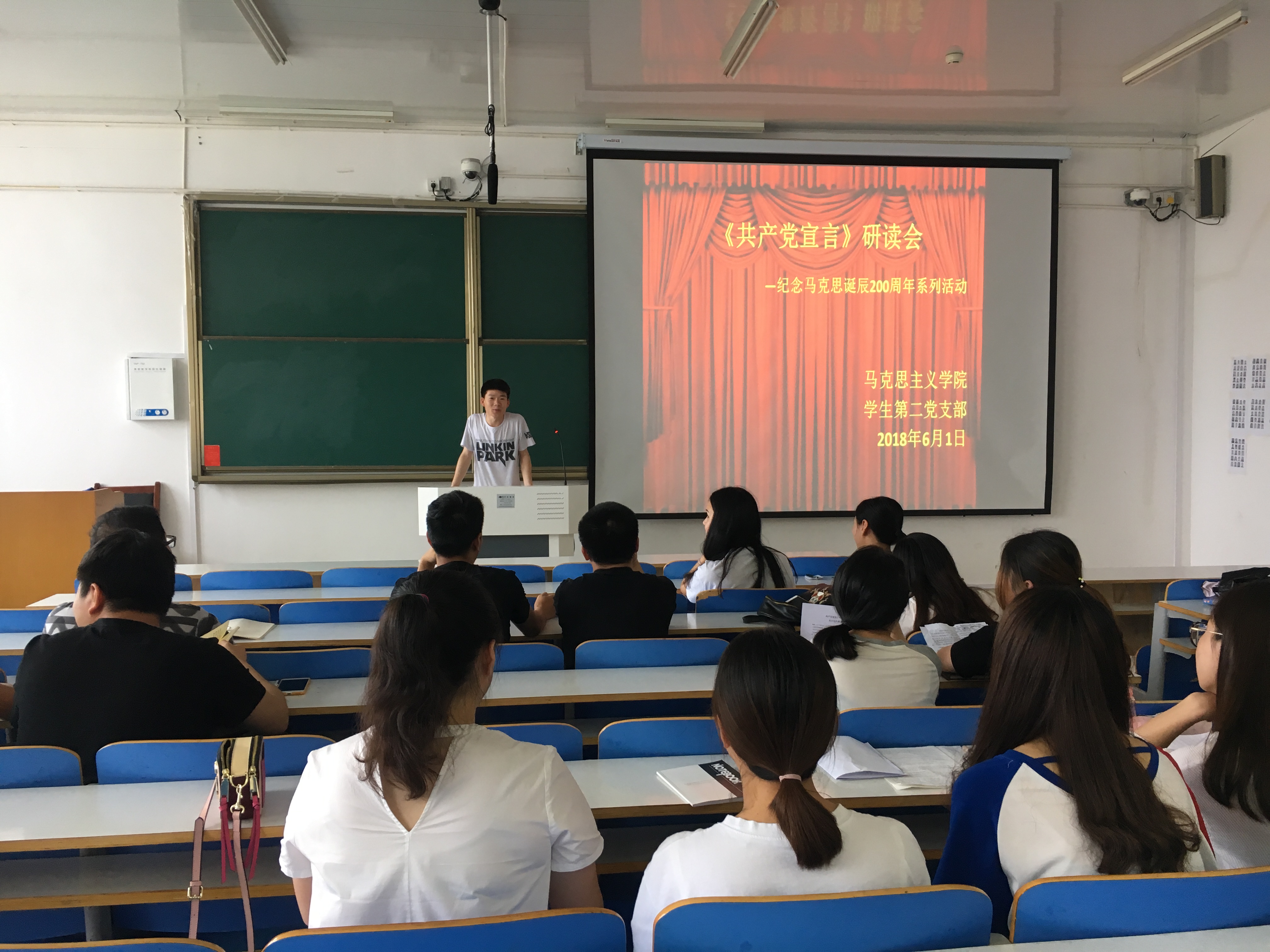为进一步引导学生党员坚定理想信念,增强“不忘初心、牢记使命”的责任感和使命感,6月1日下午,beat365亚洲版官网学生第二党支部在社科楼515教室开展了纪念马克思诞辰200周年《共产党宣言》研读会。beat365官网学生第二党支部全体成员共同参加了本次学习活动,活动由本支部组长刘帅主持。
