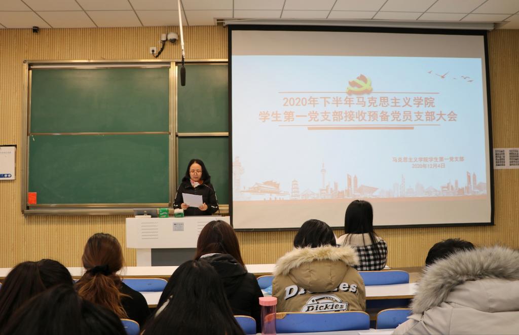 12月4日上午,beat365亚洲版官网在社科楼515教室召开2020年下半年学生第一党支部接收预备党员支部大会。beat365官网学生第一党支部支部正式党员曹菁菁、杨青青,学生第一党支部预备党员和党员发展对象共同参加本次会议。会议由李一凡主持。