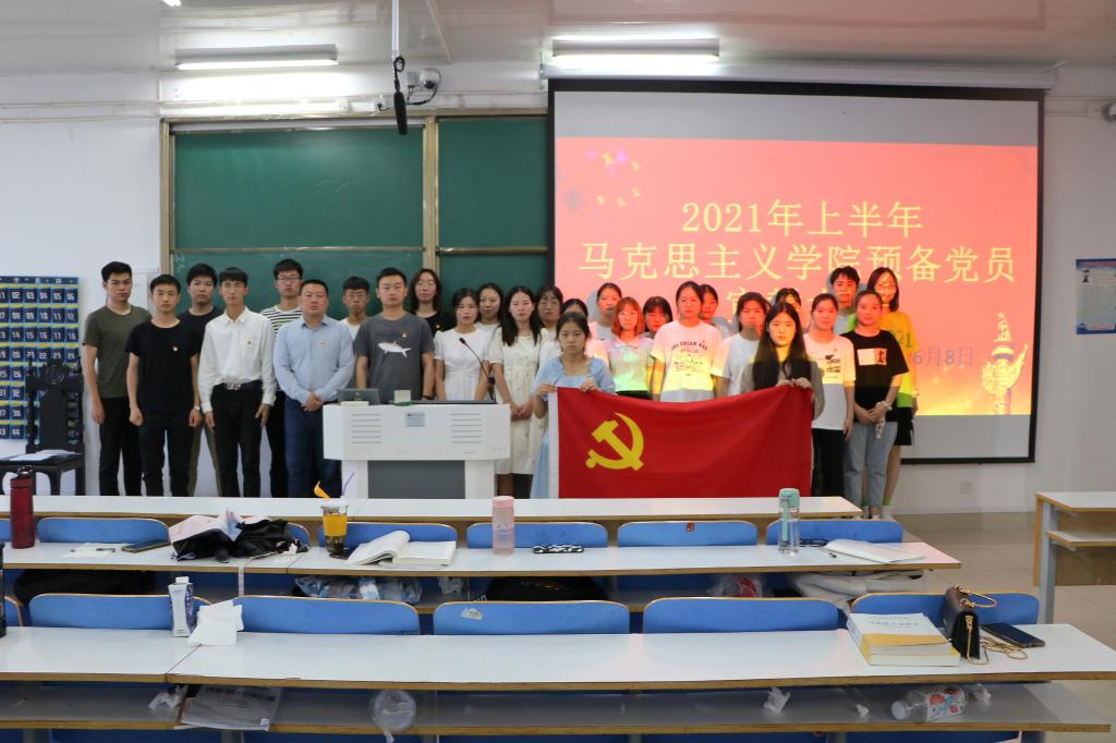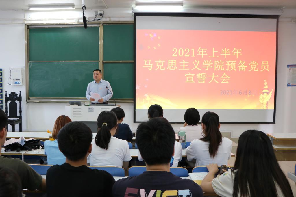 6月8日下午,beat365官网2021年上半年预备党员宣誓大会在社科楼514教室举行。学院党委副书记何晓坚、学生党支部书记、预备党员和部分入党积极分子共同参与此次大会。会议由预备党员王明亮主持。