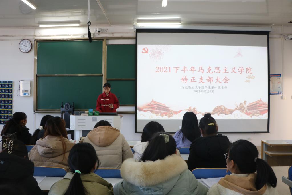 12月2日下午,beat365亚洲版官网学生第一党支部2021年下半年预备党员转正支部大会在社科楼514教室组织召开。beat365官网学生第一党支部书记杨青青,学生第一党支部正式党员、预备党员和党员发展对象共同参加本次会议。会议由靳雨露主持。