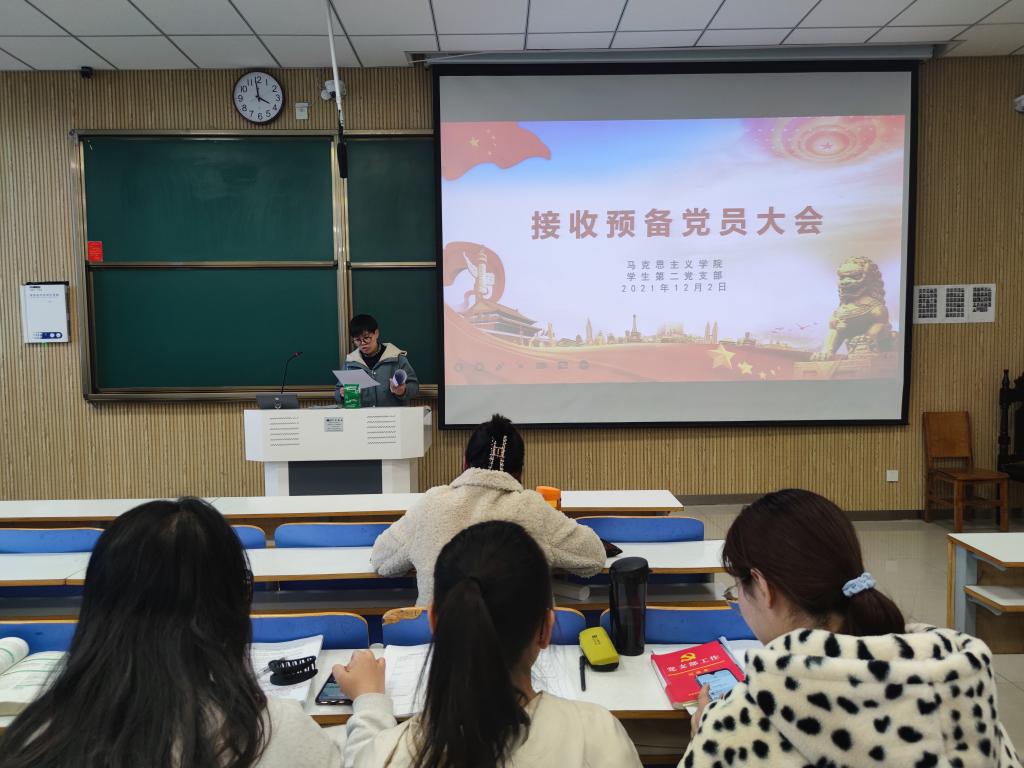 12月2日下午,beat365亚洲版官网学生第二党支部在社科楼515教室组织召开了2021年下半年接收预备党员支部大会。beat365官网学生第二党支部书记曹梦真,学生第二党支部全体正式党员、预备党员和党员发展对象共同参加本次会议。会议由王文慧主持。