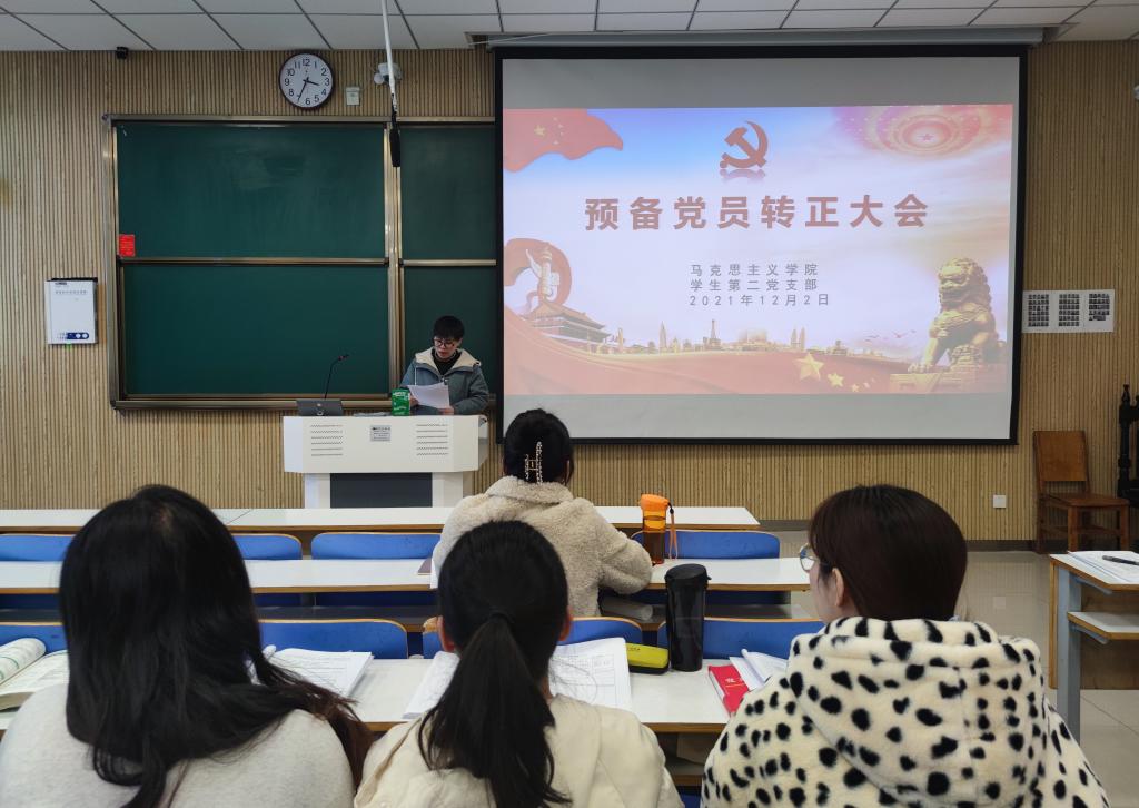 12月2日下午,beat365亚洲版官网学生第二党支部在社科楼515教室召开2021年下半年接收预备党员转正支部大会,beat365官网学生第二党支部正式党员曹梦真、杨康、王文慧、张甜甜、黄子晋,学生第二党支部预备党员和党员发展对象共同参加本次会议。会议由杨康主持。
