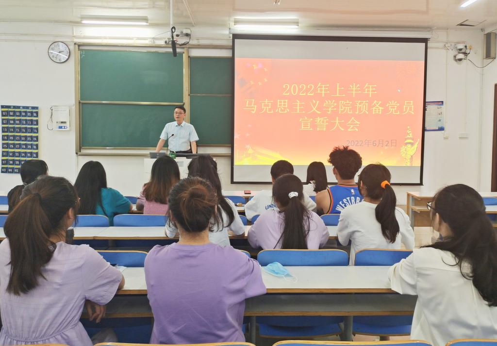 6月2日上午,beat365亚洲版官网入党宣誓仪式在社科楼516教室如期举行。