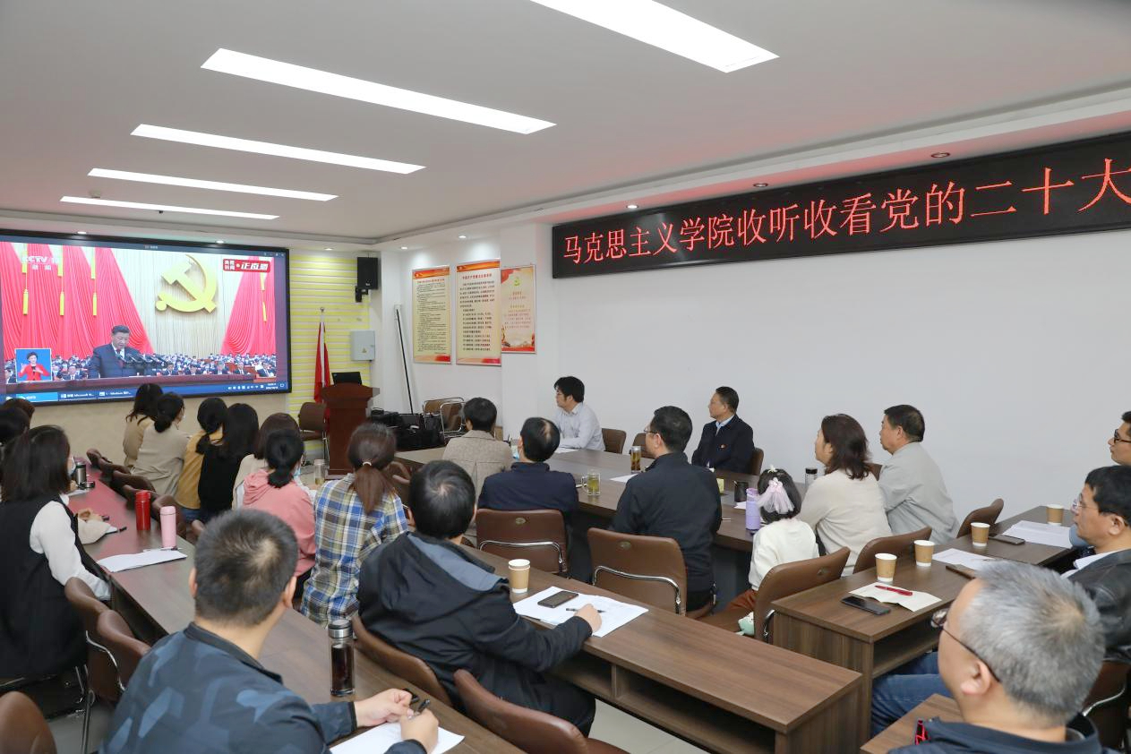 10月16日上午10时,beat365亚洲版官网领导班子成员和全体教师在323会议室大屏幕前集中收听收看党的二十大开幕盛况。