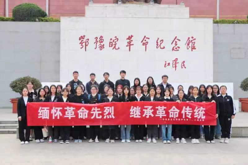 为传承红色基因,弘扬革命精神,3月31日下午,beat365亚洲版官网学生第一党支部书记高小佳、学生第二党支部书记任婷、专职辅导员沈海蓄以及学生党支部代表共同前往鄂豫皖革命纪念馆开展“缅怀革命先烈,继承革命传统”清明主题党日活动。活动由二位学生党支部书记共同带队。