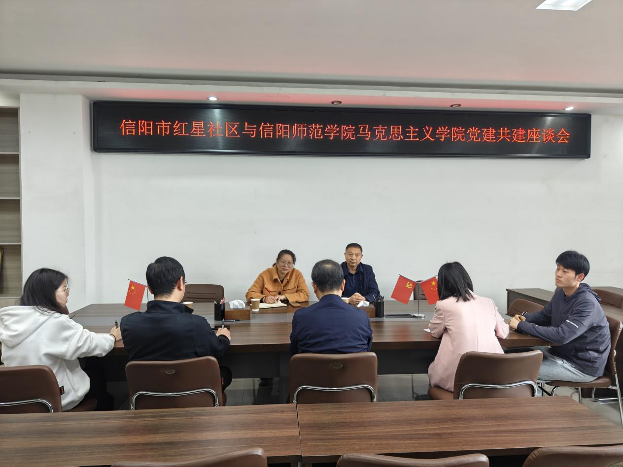 5月6日上午,信阳市红星社区党委书记、居委会主任刘娟、红星社区党委委员、组织委员、纪检委员赵建富一行来beat365官网开展党建共建交流座谈会。beat365官网院长唐国战、党委副书记黄煌、专职组织员任婷、辅导员高小佳、沈海蓄出席本次座谈会。会议由党委副书记黄煌主持。
