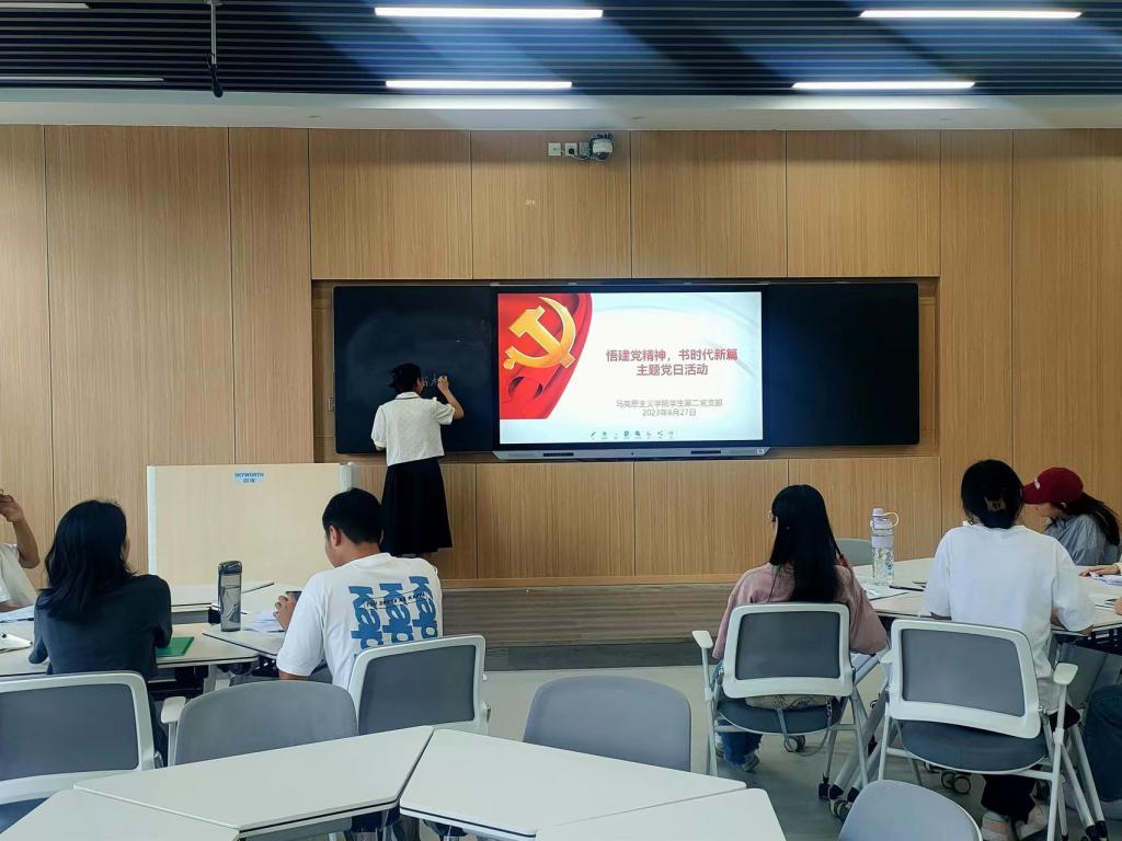 为积极响应校党委组织部《关于在“七一”前后组织开展主题党日活动的通知》的相关要求,6月27日下午,beat365亚洲版官网学生第二党支部在社科楼516智慧教室召开“悟建党精神,书时代新篇”“七一”主题党日活动。beat365亚洲版官网学生第二党支部书记任婷、全体党员、预备党员参加此次活动。活动由于嘉宁同志主持。