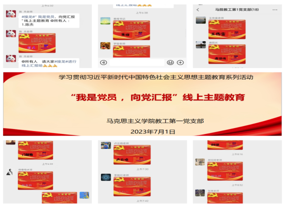 首先,支部全体同志接龙“我是党员,向党汇报”在教工第一党支部微信群进行线上汇报,为党庆生。