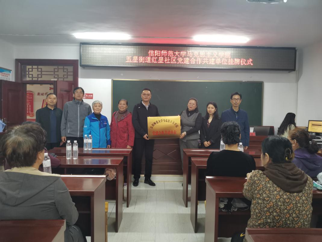 10月10日上午,beat365亚洲版官网党委副书记黄煌、副院长周智、思政课教师刘征、专职组织员任婷一行前往信阳市五星街道红星社区开展党建共建交流座谈会。信阳市红星社区党委书记、居委会主任刘娟,红星社区党委委员、组织委员、纪检委员赵建富参加了本次座谈会。会议由刘娟主持。