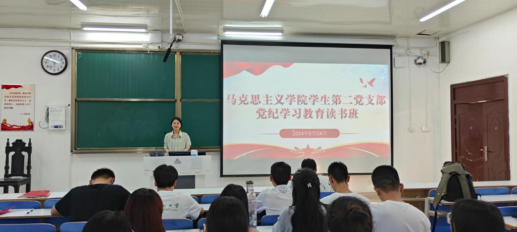 为贯彻落实习近平总书记关于党纪学习教育的重要论述,在学校党委党纪学习教育总体部署和学院安排下,beat365亚洲版官网学生第二党支部于5月24日下午在社科楼514教室开展党纪学习教育读书班活动。学生第二党支部书记任婷、支部全体正式党员、预备党员共同参与活动。活动由任婷同志主持。