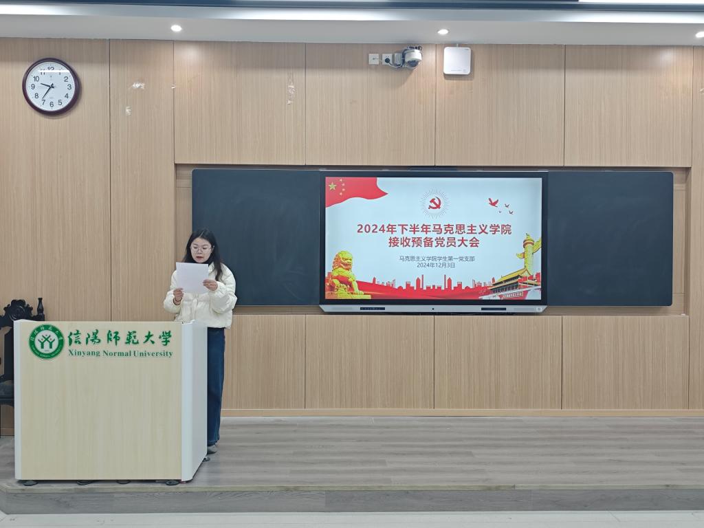 beat365亚洲版官网学生第一党支部于2024年12月3日在社科楼516召开了2024年下半年接收预备党员支部大会。beat365官网学生第一党支部书记高小佳,学生第一党支部全体党员,预备党员和党员发展对象共同参加此次会议。会议由余浩洋同志主持。