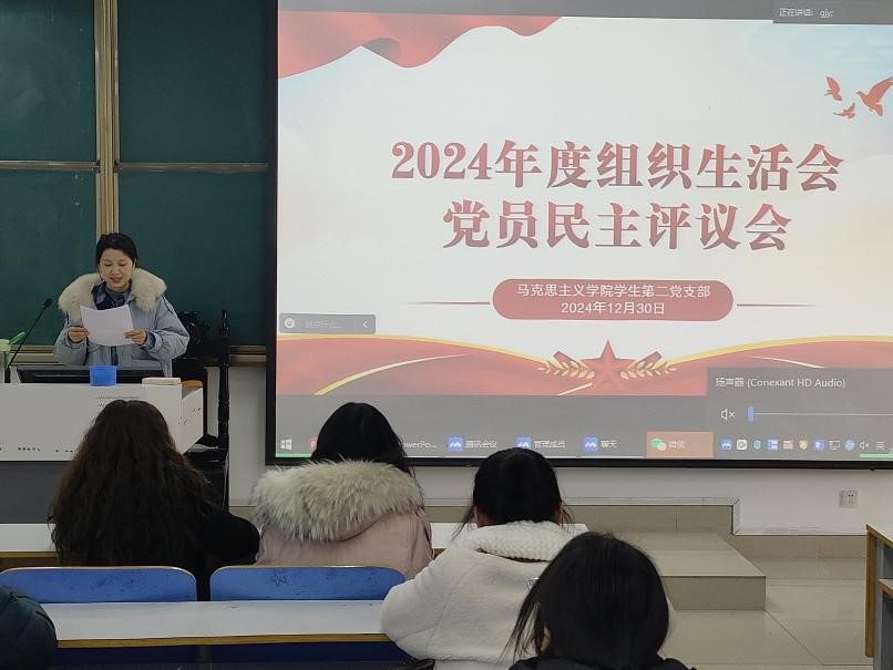 会议伊始,学生第二党支部书记任婷同志对过去一年的支部工作进行总结汇报。她指出,过去一年,本支部各项工作稳定有序开展,各位同志在理论学习、实践转化、党性锤炼等方面靶向发力,成效显著。同时,任婷同志也对支部工作中存在的突出问题作出强调,勉励同志们发扬优良作风,汲取经验教训,以实际行动为支部建设作出新的更大贡献。接着,支部全体党员按照会议议程和相关要求展开了民主评议,切实进行了批评与自我批评。整个民主评议过程公开公正,规范有序,经支部全体党员同意和支部书记确认,最终任振豪同志、常康哲同志、葛格同志被确定为2024年度民主评议“优秀”等次。