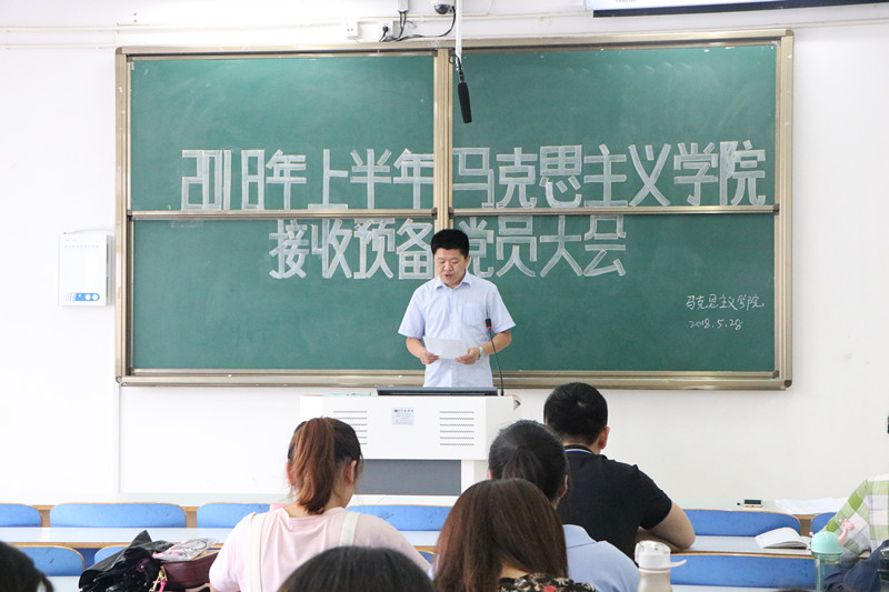 5月28日下午,beat365亚洲版官网在社科楼516教室召开2018年上半年接收预备党员大会。党委秘书、学生第一党支部书记孙绪曙、第二党支部书记曹栋、研究生党支部书记卢云晓、各学生支部全体党员和入党积极分子参加了此次大会。会议由团委副书记张雅琼主持。