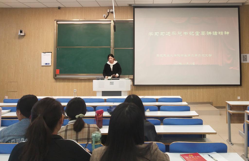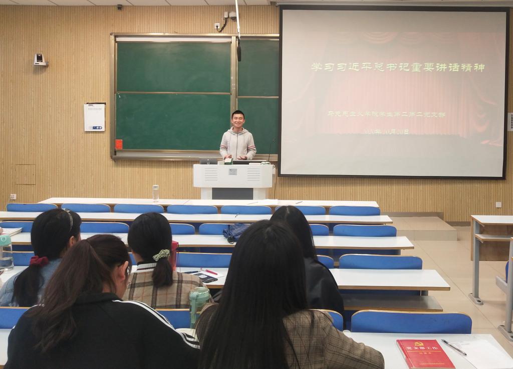 10月20日下午,beat365亚洲版官网学生第二党支部在社科楼515教室顺利开展“学习习近平总书记重要讲话精神”主题党日活动。学生第二党支部全体成员共同参加了此次会议。会议由艾子元主持。