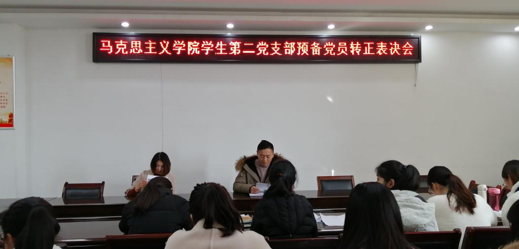 12月10号,beat365亚洲版官网学生第二党支部在社科楼323会议室召开了2019年下半年党员转正表决会,大会讨论关于刘冰等4名预备党员申请转为正式党员的事宜。学生第二党支部支部书记曹栋,全体党员共同参加。会议由曹栋主持。