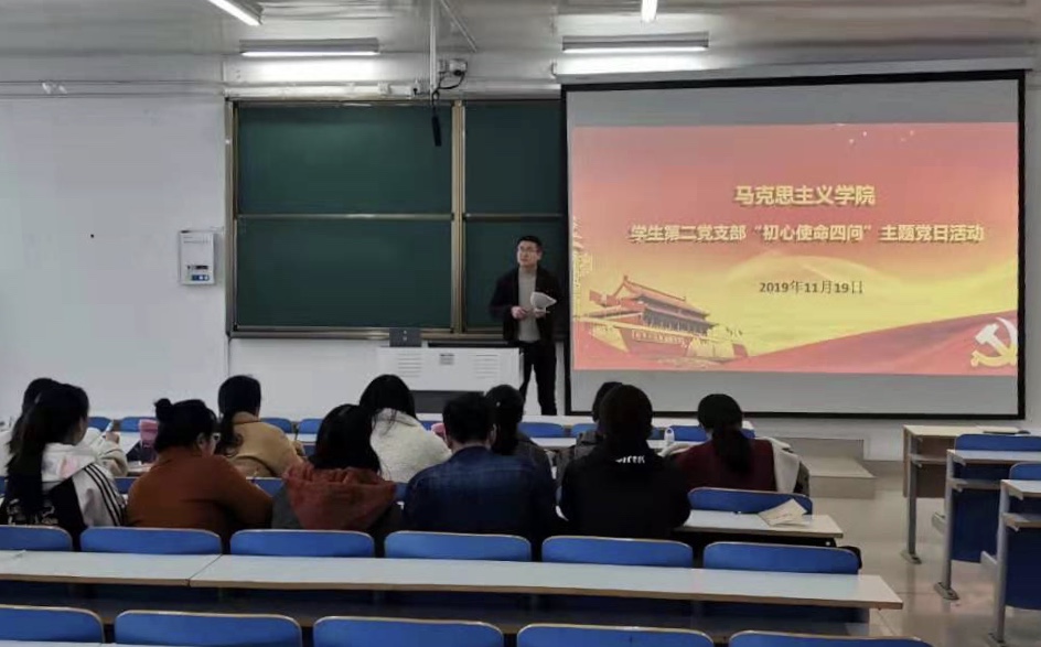 11月19日,beat365官网学生第二党支部在社科楼514教室召开“初心使命四问”主题党日活动。beat365官网学生第二党支部组织委员杨胜利、预备党员以及党员发展对象参加本活动。活动由杨胜利主持。