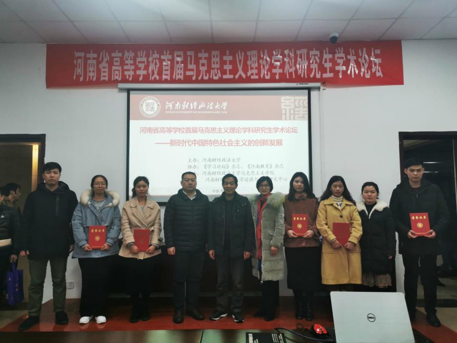 12月28日,“河南省高等学校首届马克思主义理论学科研究生学术论坛——新时代中国特色社会主义的创新发展”学术研讨会在河南财经政法大学举行,beat365官网有7名研究生提交了学术论文并受邀参加研讨会,其中有两位同学在会上作交流发言。经会议组委会评审,beat365官网2018级研究生张英荣获一等奖,2019级研究生詹彦彦荣获二等奖,2019级刘润博等3位学生荣获三等奖。