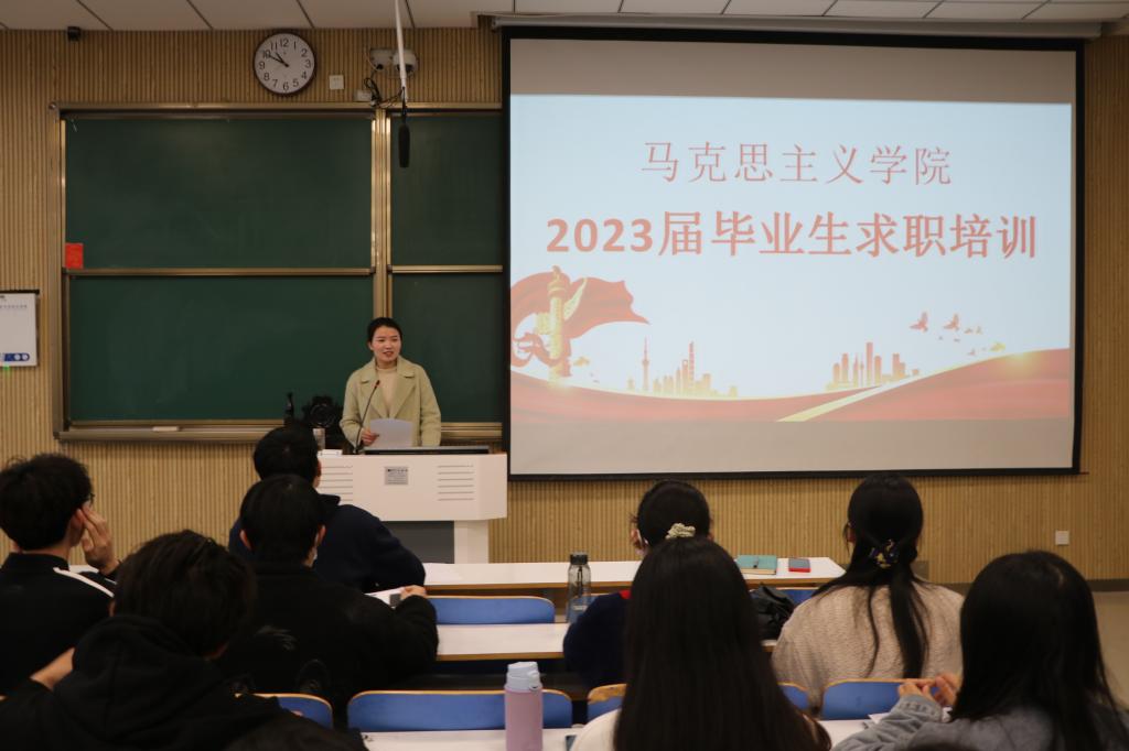 活动围绕就业形势分析、求职面试培训、择业心态调整三部分开展。第一场培训活动中,杨园园就求职简历撰写对毕业生进行指导。她指出,毕业生们应从工作履历、工作经历、自我评价等方面细化个人求职简历,避免出现信息归类不当、个人优势不突出、语言冗余匮乏等错误。随后,陶青青进行总结,她叮嘱毕业生们应树立正确求职观,尽快完成从大学生到社会人的角色转变。第二场培训活动中,曹栋作为毕业班辅导员对毕业生提供就业指导。他表示,目前就业形势严峻,大家要积极转变观念,综合考虑自身优势和社会需求,勇于尝试,主动出击,找到适合自己的职业。第三场培训活动中,张芝一通过播放纪录片《蚁族日记》,以点带面地展示了当代中国大学生所面临的就业现状,有利于毕业生找准自身定位,提高核心竞争力和职业素养。