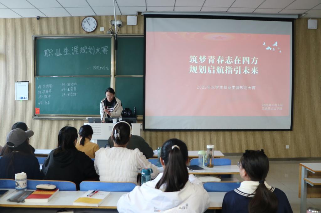 为帮助同学们找准人生目标,树立正确的就业观,10月13日上午,beat365亚洲版官网在社科楼515教室举办职业生涯规划大赛。beat365官网专职组织员任婷、专职辅导员沈海蓄、思政课教师杨春艳、葛格以及分团委学生会主席团成员担任评委。