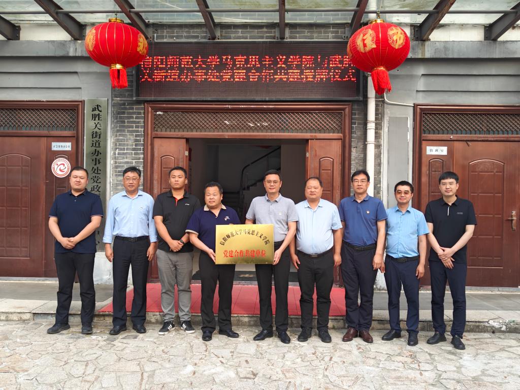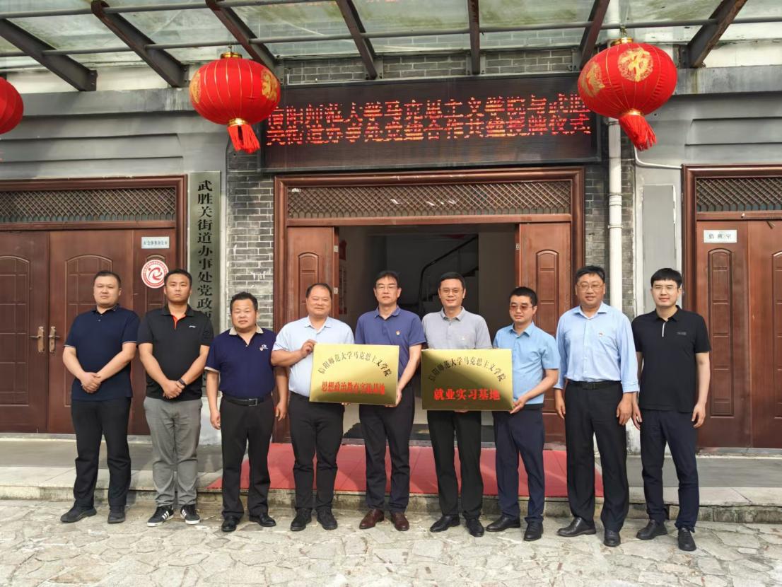双方相关负责人在党建合作、学生就业服务、科学研究、成果转化、实习实训基地共建等方面进一步交流,达成相关合作意向,并向武胜关街道办事处授予beat365亚洲版官网党建合作共建单位、思想政治教育实践基地、beat365亚洲版官网“就业实习基地”牌匾。