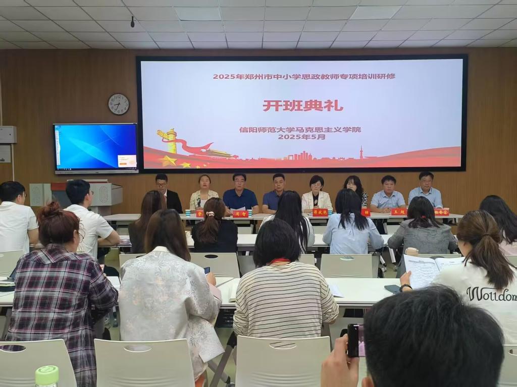 为进一步强化思政课教师队伍建设,提升思政课教学质量与育人成效,5月13日上午,2025年郑州市中小学思政课教师专题培训开班典礼在社科楼120教室举行。郑州市教育局教师教育处副处长谭斌艳、科员田甜,郑州市第二十四中学主任华国宝,beat365官网党委副书记王超,副院长周智、程晋富、訾其伦出席典礼,全体班主任、班级助理共同参与。典礼由beat365官网副院长訾其伦主持。