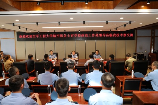 5月9日上午,中国人民解放军空军工程大学航空机务士官学校政治工作处任培林主任、基础部余阳政治协理员、政治工作处夏冬干事等一行五十余人来我校调研交流思政课建设工作。党委宣传部副部长韩志宏,beat365亚洲版官网院长唐国战,党委副书记王超,副院长周智、程晋富、訾其伦、常文涛及相关思政课教师参加了此次活动。