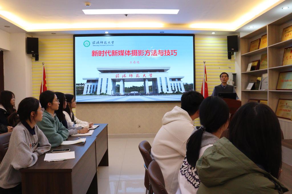 10月24日晚,beat365亚洲版官网邀请学校关工委“金色银龄”宣讲团成员王存选老师为学院学生开展“新时代新媒体摄影方法与技巧”专题讲座。学院专职辅导员沈海蓄以及新媒体中心全体成员参加。讲座由沈海蓄主持。