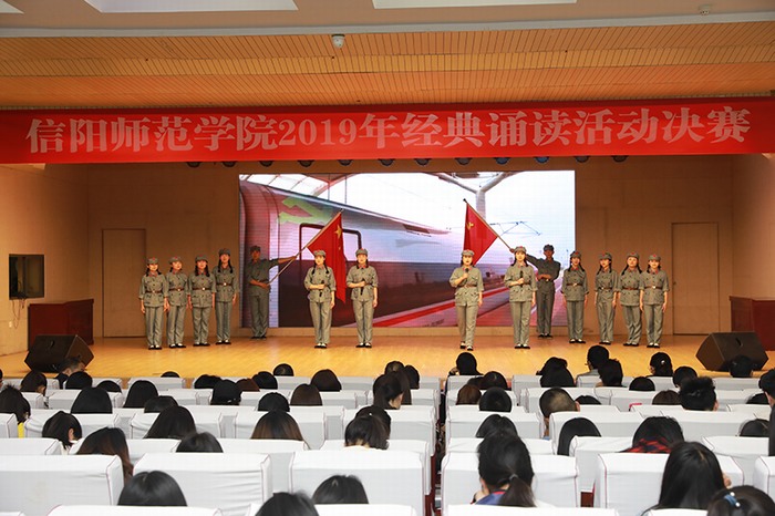 5月7日下午,信阳师范学院诵读比赛决赛在理科楼报告厅举行。beat365官网研究生诵读代表队积极参加比赛,并取得了优异成绩,荣获“优秀组织奖”,《党旗颂》节目荣获三等奖。
