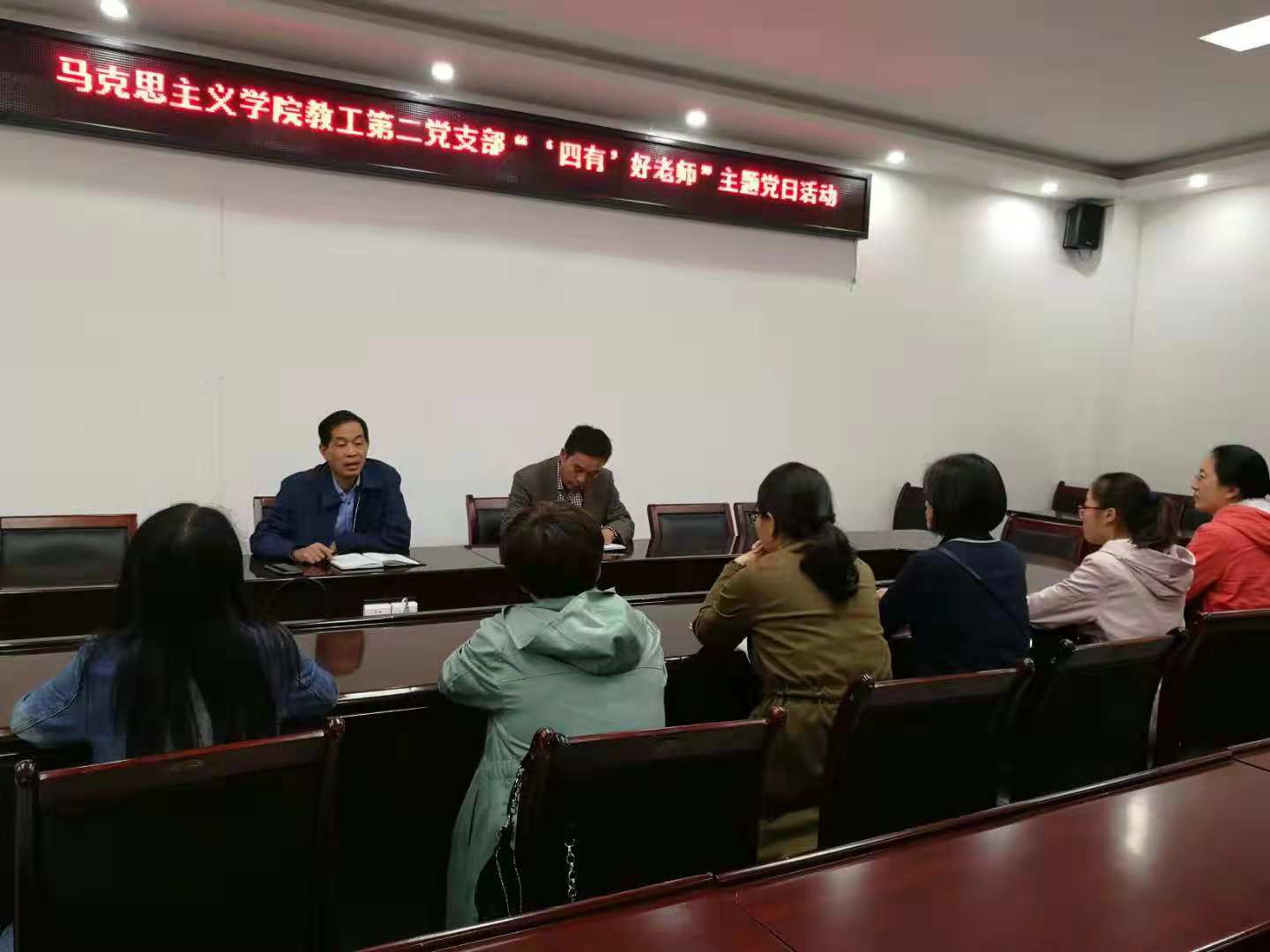 为提高教师党员的党性修养,学习践行习近平总书记提出的做有理想信念、有道德情操、有扎实学识、有仁爱之心的“‘四有’好老师”的指示精神,10月25日下午,beat365官网教工第二党支部在323会议室召开了“‘四有’好老师”主题党日活动会议。会议由代理党支部书记黄世明副院长主持。