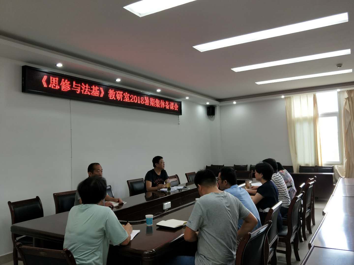 为推动高校思政课教学改革,提高思政课教师的教育教学水平,增强思政课育人实效性,8月24日至28日,beat365亚洲版官网举行了思政课集体备课及教学观摩课活动。集体备课在社科楼323会议室、观摩课在社科楼514教室进行。学院领导班子和教师全员参加,活动由副院长程晋富教授主持。