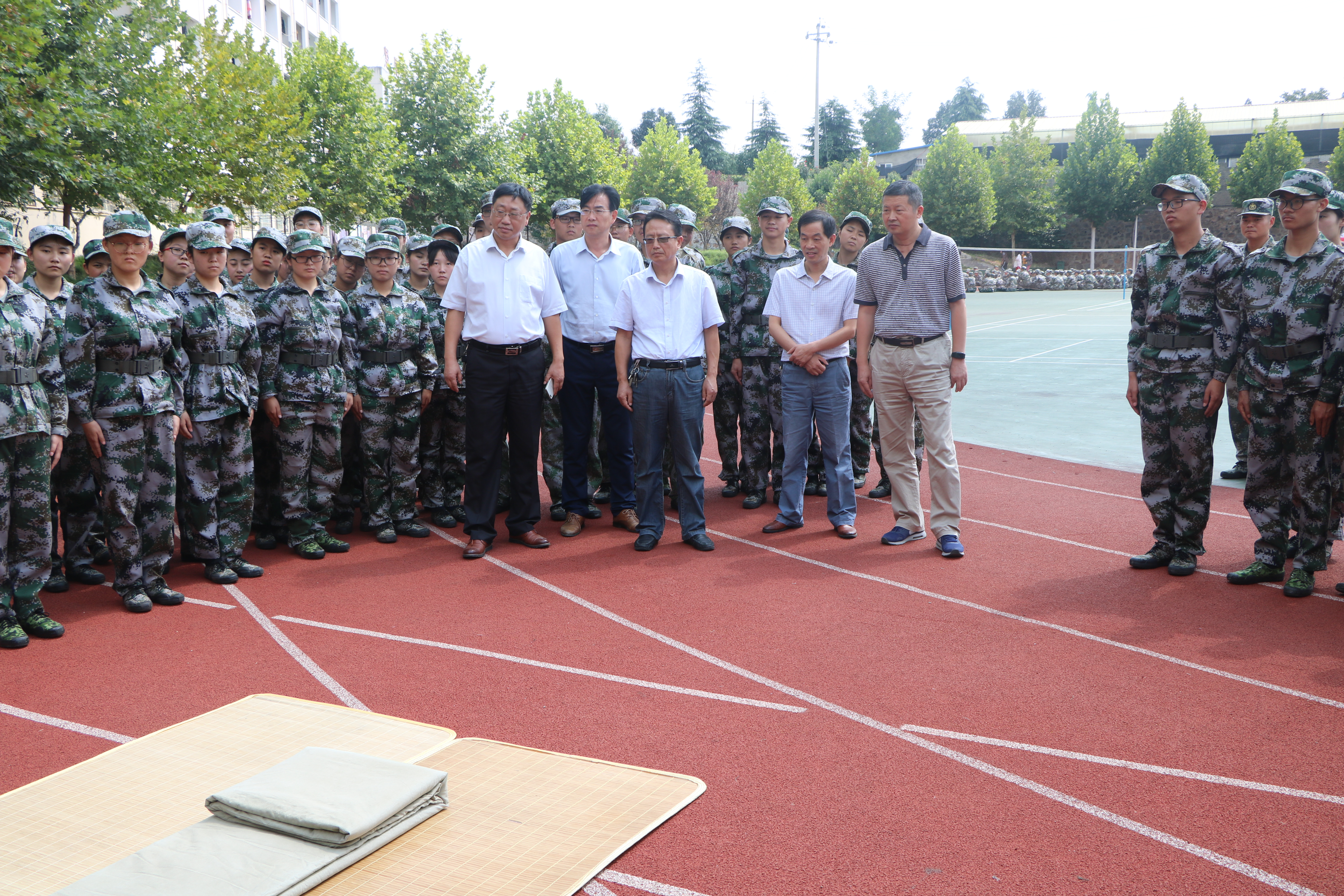 九月丹桂香,学子练兵忙。9月14日上午,beat365官网党委书记唐国战,副院长周智、黄世明、程晋富,党委副书记徐永新、何晓坚,团委书记曹栋和专职辅导员曹菁菁等领导老师深入军训现场慰问教官及新生。