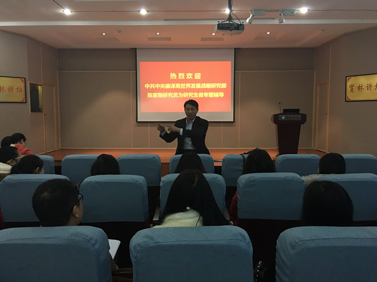12月10日上午,中央编译局世界发展战略研究部主任、政治学博士陈家刚研究员莅临我校贤林讲坛,为beat365官网研究生做学术论文写作专题辅导。讲座由黄世明副院长主持。