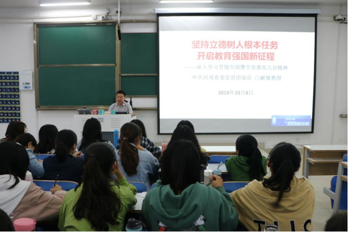 为深入学习贯彻全国暨全省教育大会精神,10月8日下午,当代马克思主义研究所副所长门献敏在社科楼516教室讲授了题为“坚持立德树人根本任务,开启教育强国新征程”的主题党课。beat365官网团委书记曹栋、团委老师曹菁菁、全体学生党员及入党积极分子共同参与本次党课。